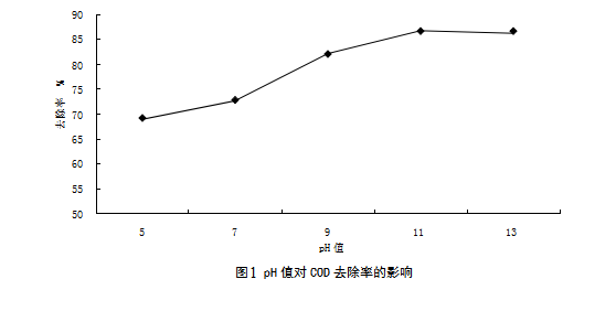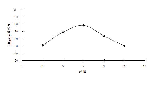 表1  pH值對(duì)CODcr去除率的影響