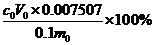 V0 - 滴定突躍點(diǎn)時(shí)消耗高氯酸的體積(ml)