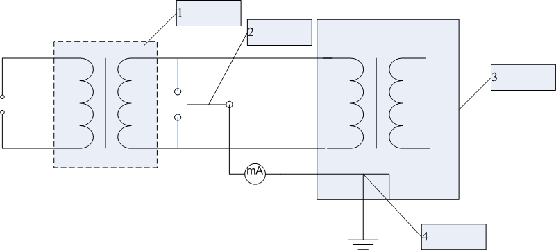 測(cè)試時(shí),儀器只用一只隔離變壓器將電源隔離,連接方法如圖2。利用轉(zhuǎn)換開關(guān)2依次測(cè)量電網(wǎng)電源的每個(gè)極與機(jī)殼、儀器的可觸及導(dǎo)電部分3之間的泄漏電流。#p#分頁標(biāo)題#e#